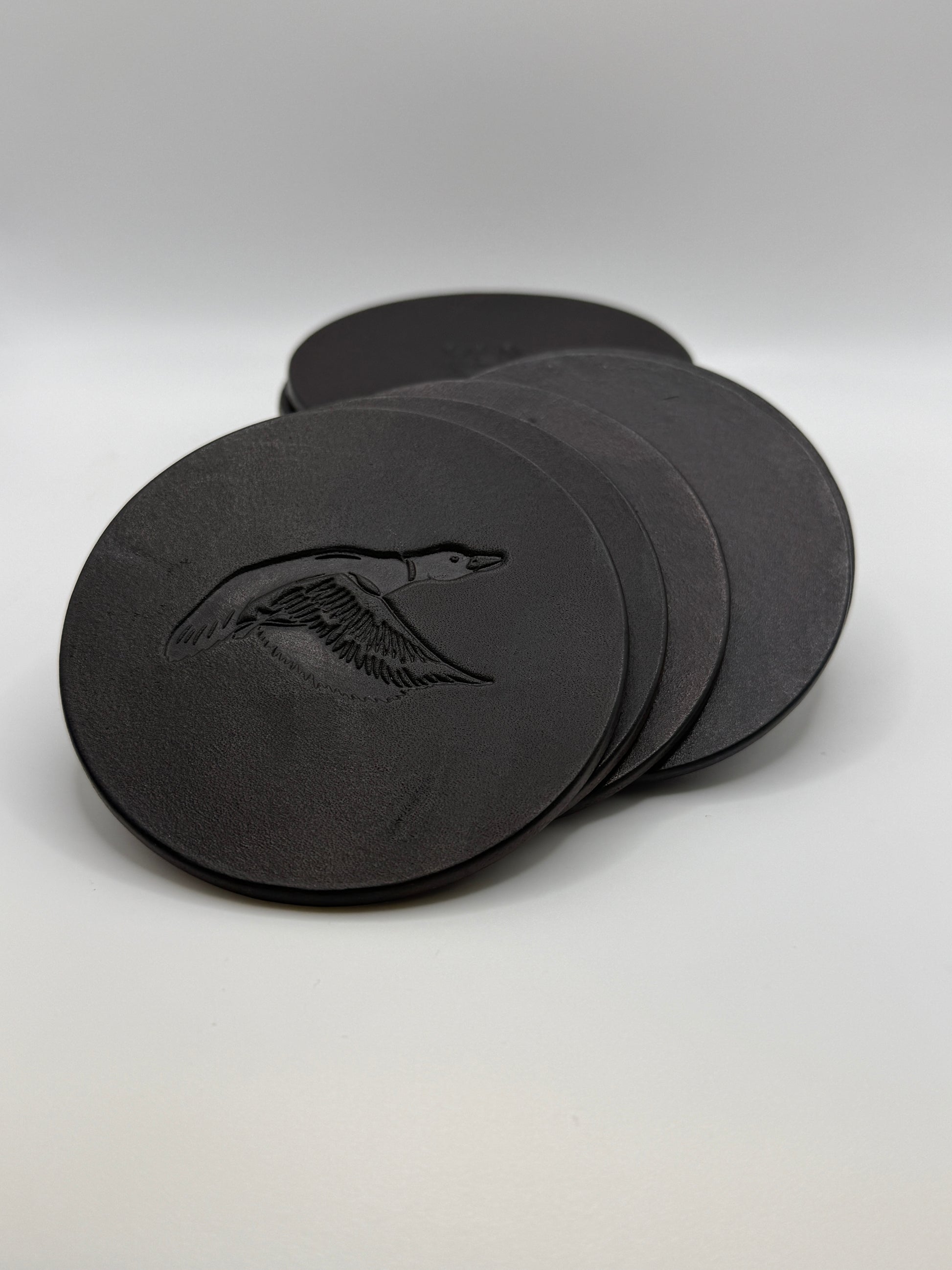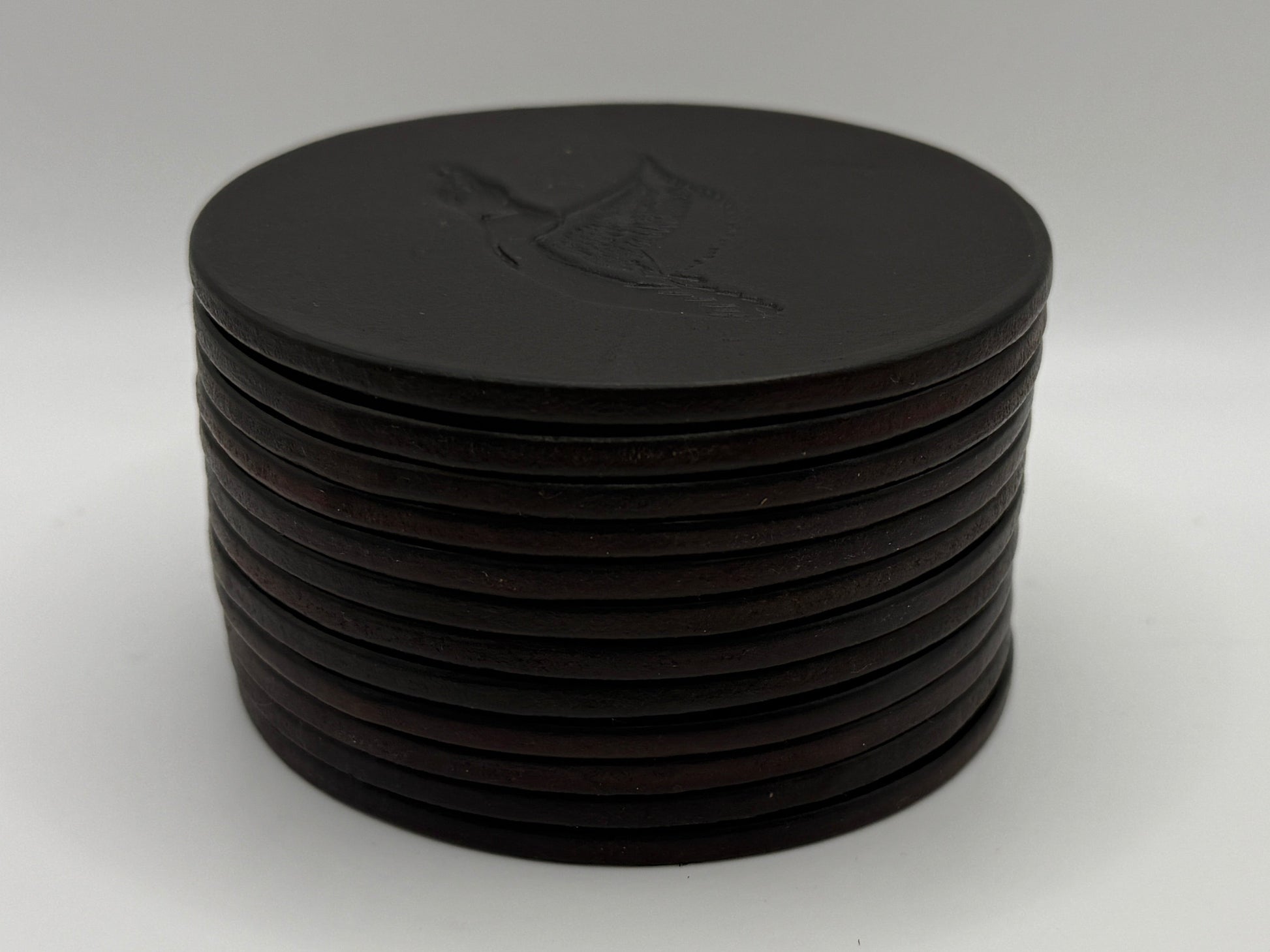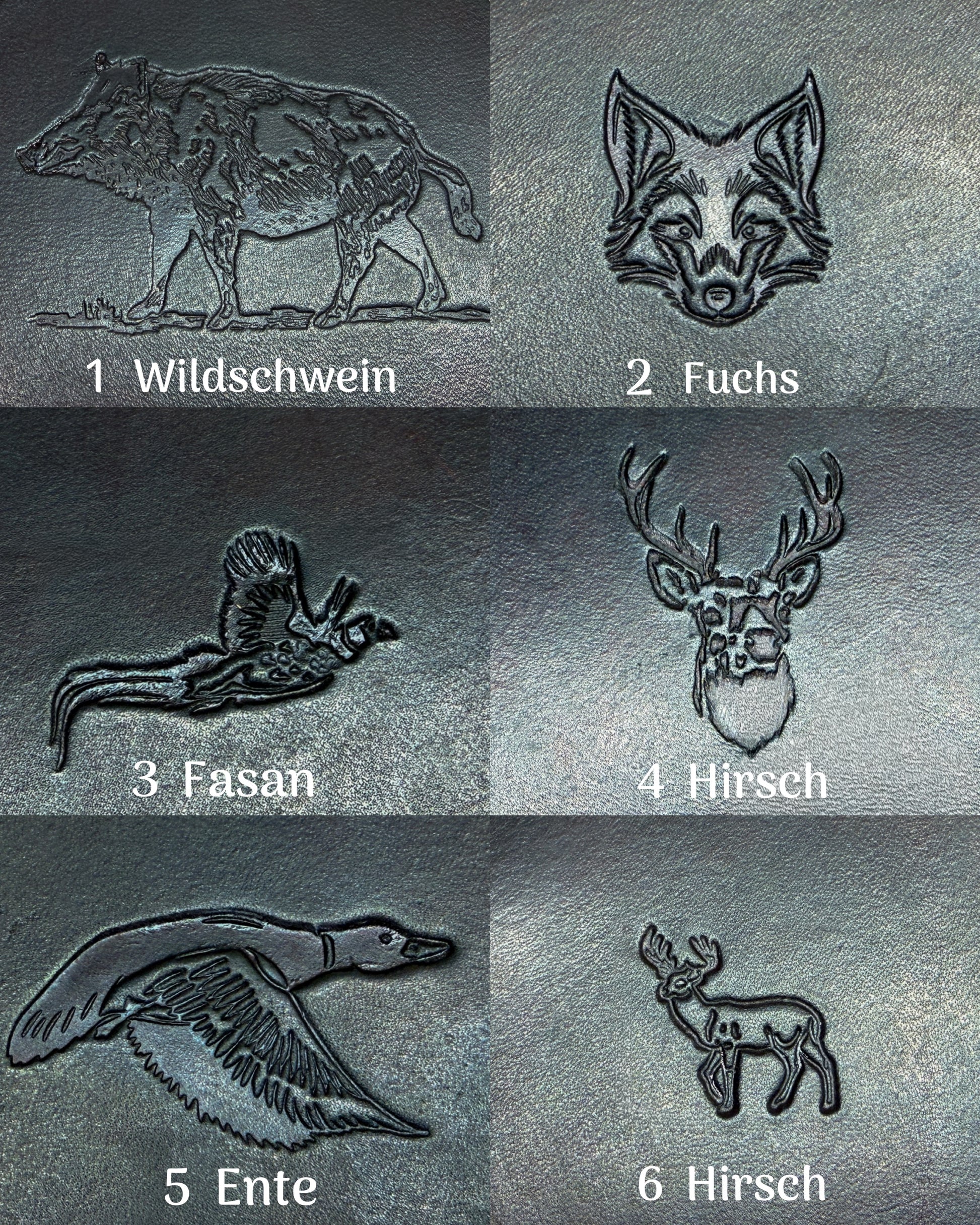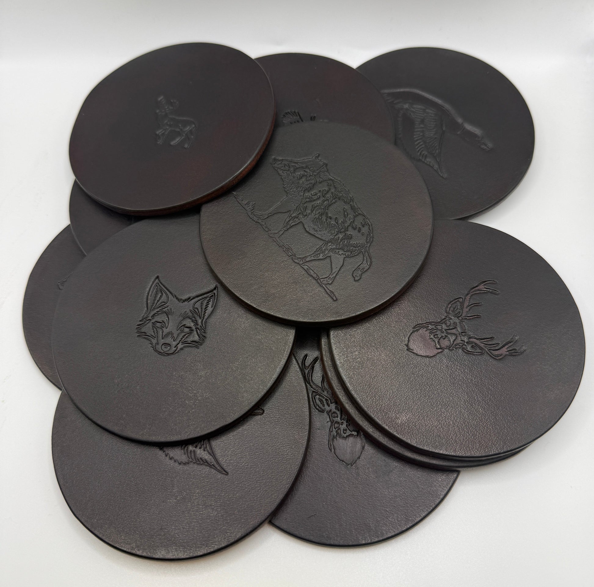 Die jagdlichen Motive werden präzise ins Leder gestempelt und machen jeden Untersetzer zu einem zeitlosen Stück Handwerk.